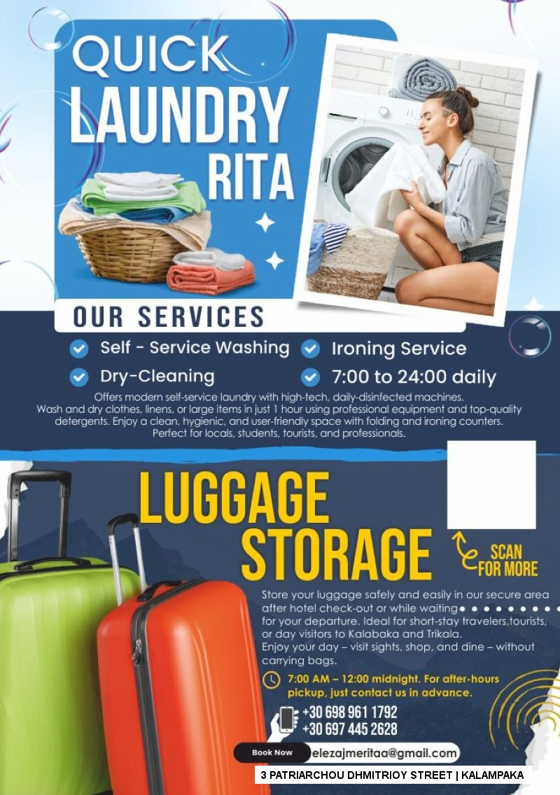 Ιδανικό για ταξιδιώτες μικρής διάρκειας, τουρίστες ή επισκέπτες για μία ημέρα στην Καλαμπάκα και τα Τρίκαλα.