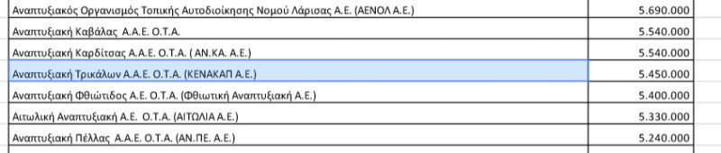 Σας επισυνάπτουμε πίνακα με τα ακριβή ποσά ανά Αναπτυξιακή, όπως αναφέρονται στο ΦΕΚ.