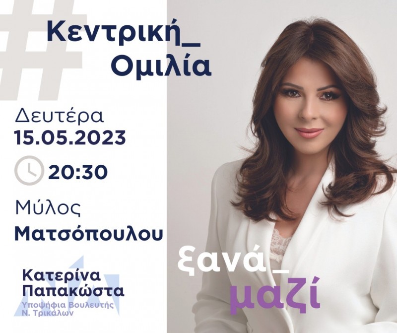 Σε μία ομιλία διαφορετική από τα συνηθισμένα, προσκαλεί τους τρικαλινούς ψηφοφόρους, η Υποψήφια Βουλευτής της Νέας Δημοκρατίας, Κατερίνα Παπακώστα, μέσω των επίσημων καναλιών της στα μέσα κοινωνικής δικτύωσης.
