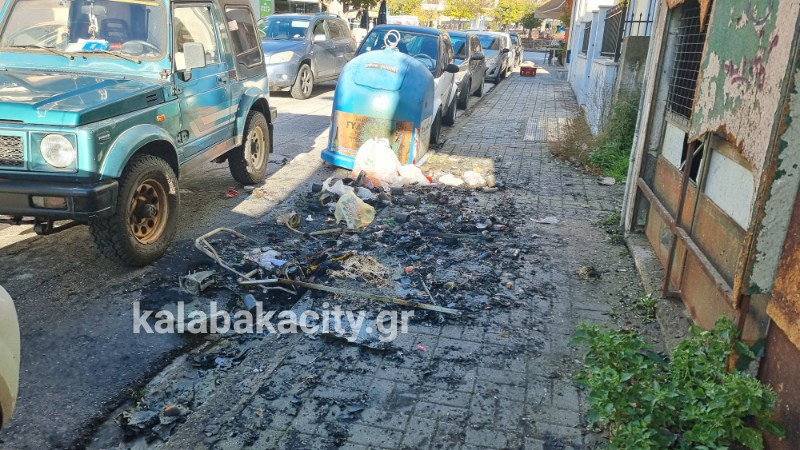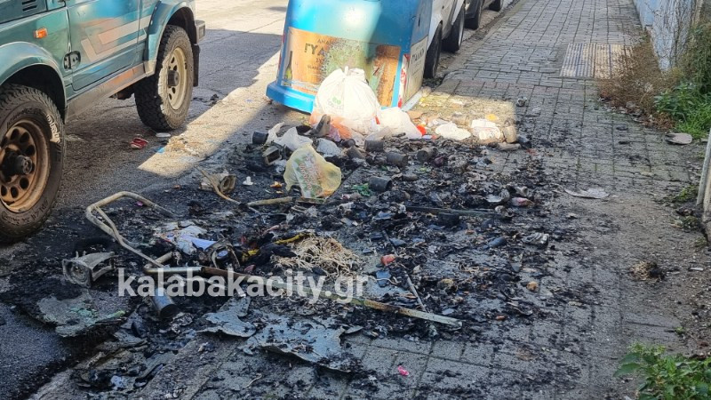Συνεχίζουν να παραμενουν στο ίδιο σημείο τα υπολείμματα των κάδων και των σκουπιδιών που κάηκαν τα ξημερώματα της Τρίτης στην οδό Κονδύλη στην πόλη μας!!!