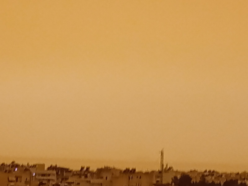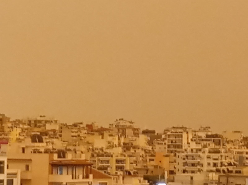 Μοναδικές εικόνες μας ήρθαν από την Αττική με την ατμόσφαιρα να έχει πάρει ένα απίστευτο χρώμα κίτρινο – πορτοκαλί από την αφρικανική σκόνη.