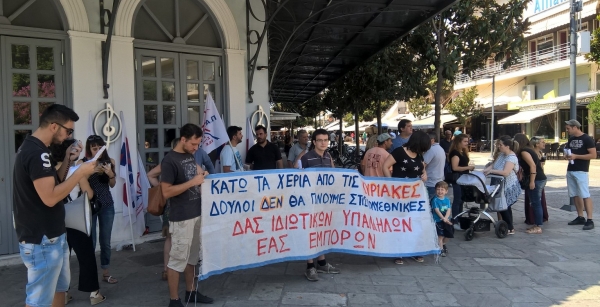 «Η Κυριακή είναι μέρα που ανήκει σε εμάς τους εργαζόμενους και τους ανθρώπους του μόχθου. Είναι μέρα ξεκούρασης που αναπληρώνουμε τις δυνάμεις μας, είναι μέρα που αφιερώνουμε στην οικογένεια μας, μέρα κοινωνικής ζωής και δράσης. Η αργία της Κυριακής κερδήθηκε με αγώνες, γι΄ αυτό και αποτελεί ιστορική κατάκτηση της εργατικής τάξης και δεν θα την χαρίσουμε στις πολυεθνικές, αντίθετα παλεύουμε ενάντια στους νόμους και τις κυβερνήσεις που επιβουλεύονται τη πλήρη κατάργηση της.»