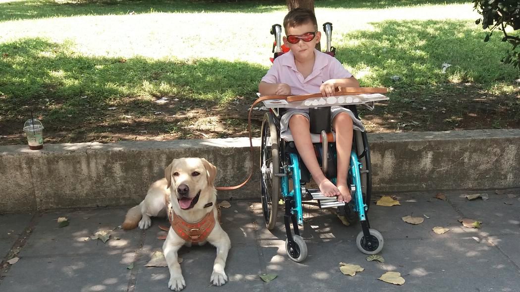 Το 2015 και ενώ ο Γιώργος έκανε ακτινοβολίες, χάζευα στο Facebook. Μου βγήκε ως προτεινόμενο βίντεο ένα παιδάκι από το εξωτερικό που έκανε φυσιοθεραπείες με τη βοήθεια ενός σκύλου. Μετά τις ακτίνες, ο Γιώργος θα έπρεπε να ξεκινήσει πάλι φυσιοθεραπείες και σκεφτόμουν πόσο δύσκολο θα ήταν για αυτόν, δεδομένης της άρνησής που έδειχνε σε όλα αυτά. Ξεκίνησα, λοιπόν, να ψάχνω και στο ελληνικό Google. Στην αναζήτηση προέκυψε η Έλενα Παλάγκα και το Nina Service Dogs, η σχολή σκύλων-βοηθών. Της έστειλα μήνυμα. Η Έλενα μου εξήγησε τι κάνει ένας σκύλος-βοηθός και ήμουν σίγουρη πως αυτό ήταν που χρειαζόταν ο Γιώργος. Το μόνο πρόβλημα ήταν πως εγώ δεν είχα καμία επαφή με σκυλιά. Ήμουν, όμως, αποφασισμένη να ξεπεράσω τη φοβία μου. Ο σκύλος-βοηθός ήταν αυτό που χρειαζόταν και ο Γιώργος και εμείς.