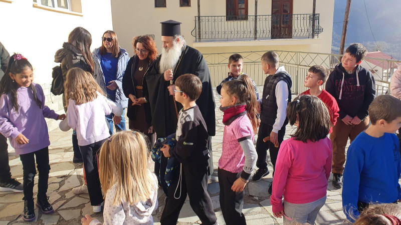 Κοντά στους μικρούς Μαθητές στην ορεινή Χρυσομηλιά ο Μητροπολίτης Σταγών και Μετεώρων κ. Θεόκλητος