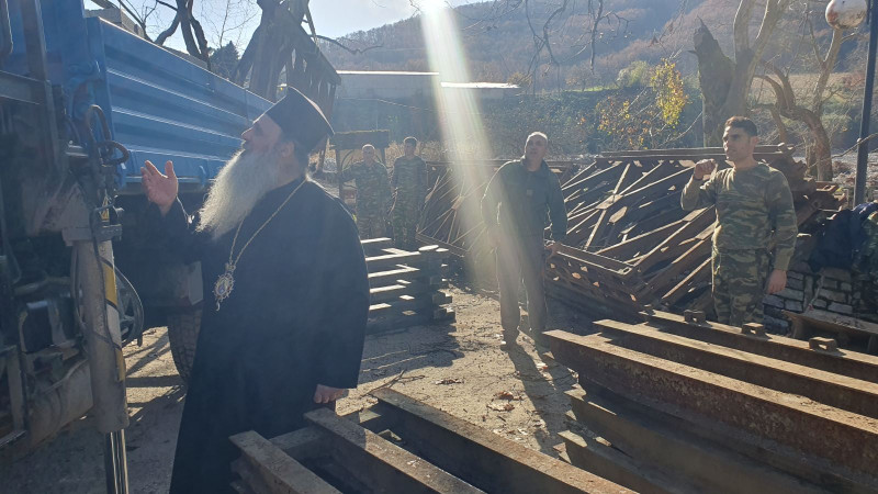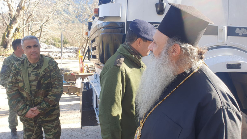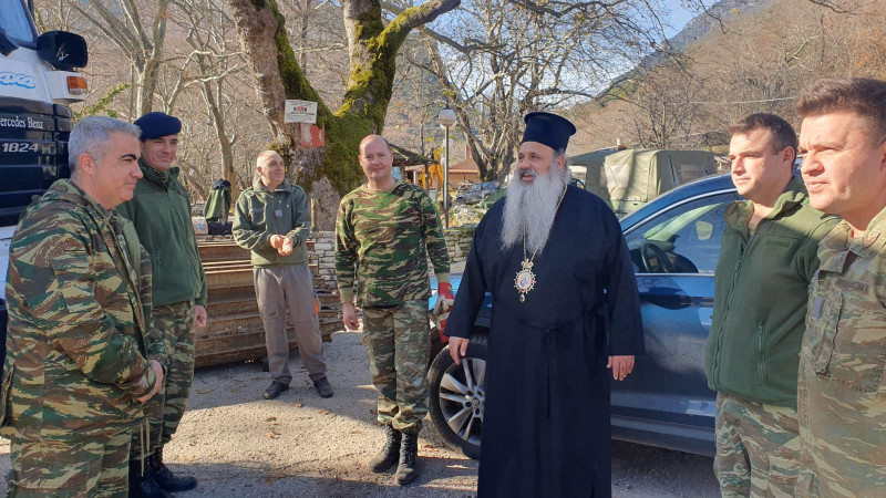 Μάλιστα, κατά την επιστροφή του ο Σεβ. Μητροπολίτης συνάντησε επιτελείο του ελληνικού Στρατού, το οποίο κατασκευάζει γέφυρα με σκοπό την ομαλή μετακίνηση των κατοίκων στις απόμακρες περιοχές του νομού Τρικάλων.