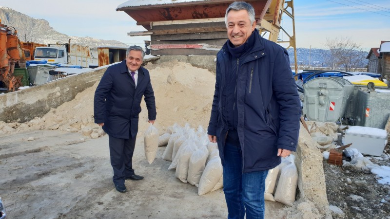 Η εικόνα είναι από το αμαξοστάσιο του Δ. Μετεώρων κοντά στον Βιολογικό Καθαρισμό όπου βρίσκονται ειδικές σακούλες με αλάτι για όσους χρειάζονται και οι δυο αντιδήμαρχοι ήταν εκεί…