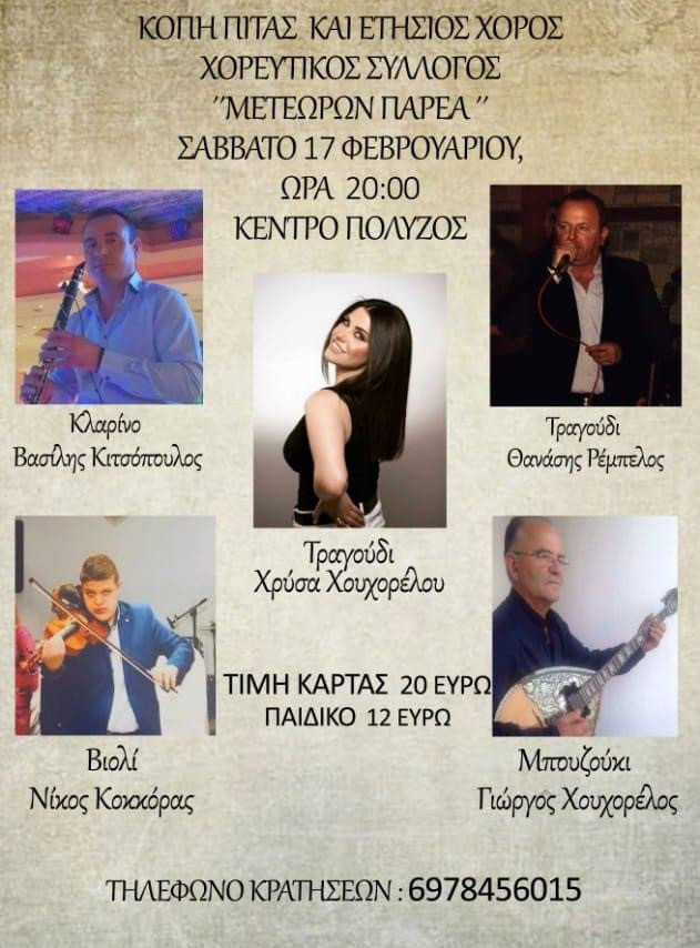 Σάββατο 17 Φεβρουαρίου και ώρα 20:00 στο Εστιατόριο Πολύζος.