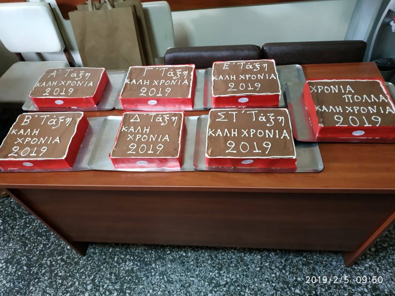 Κάθε τάξη έκοψε την πίτα της και κόπηκε και μία πίτα για το Σύλλογο Διδασκόντων του Σχολείου μας. Οι τυχεροί, που κέρδισαν το φλουρί, έλαβαν από ένα δώρο προσφορά του Συλλόγου Γονέων και Κηδεμόνων.