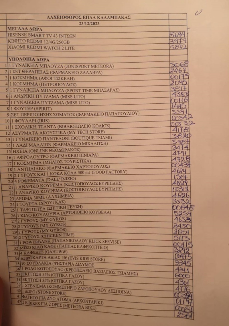 ΤΑ ΔΩΡΑ ΚΑΙ ΟΙ ΑΡΙΘΜΟΙ ΤΗΣ ΛΑΧΕΙΟΦΟΡΟΥ ΤΟΥ ΧΟΡΟΥ ΤΗΣ 23/12/2023