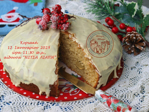 Σᾶς προσκαλοῦμε στήν ἐκδήλωση κοπῆς τῆς Ἁγιοβασιλόπιτας τοῦ Συλλόγου μας, πού θά πραγματοποιηθεῖ τήν Κυριακή 12 Ἰανουαρίου 2025 καί ὥρα 11:30 π.μ. στήν αἴθουσα «ΝΙΤΣΑ ΛΙΑΠΗ».