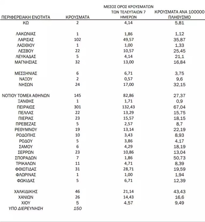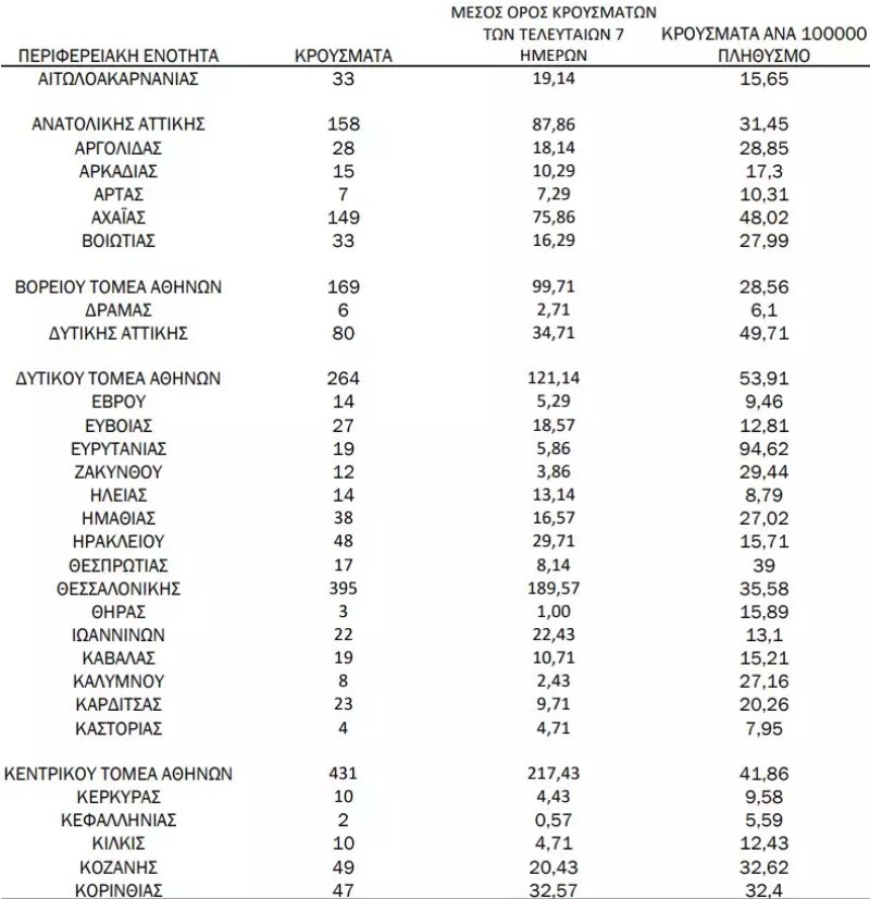 Αναλυτικά τα στοιχεία που έδωσε στη δημοσιότητα ο ΕΟΔΥ: