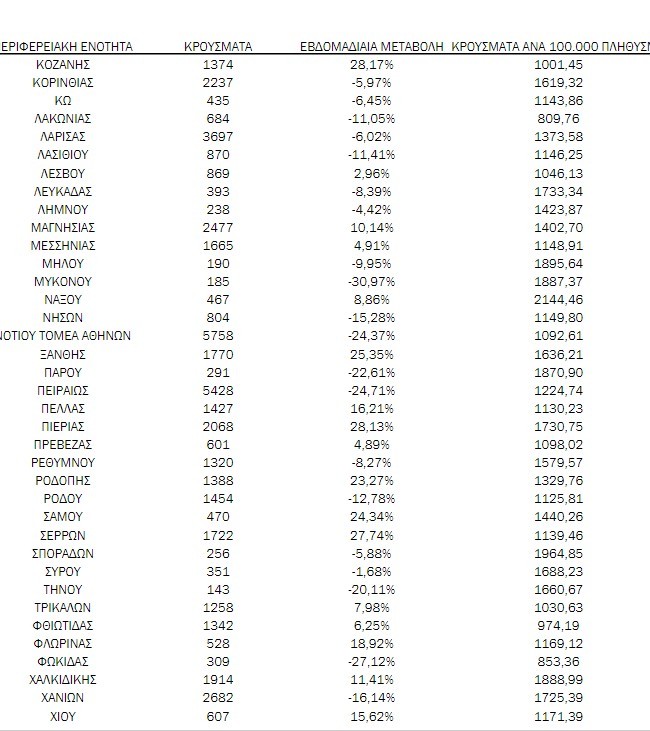 Κορονοιός: 1258 κρούσματα την εβδομάδα 18 έως 24 Ιουλίου στην Π. E. Τρικάλων – 136.077 στην χώρα μας
