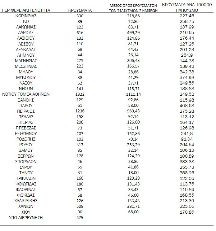 Τα νέα εργαστηριακά επιβεβαιωμένα κρούσματα της νόσου(άτομα) που καταγράφηκαν τις τελευταίες