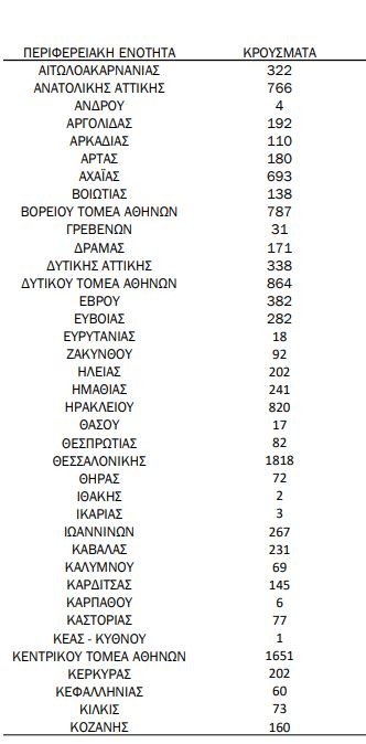 Τα νέα εργαστηριακά επιβεβαιωμένα κρούσματα της νόσου που καταγράφηκαν τις τελευταίες 24 ώρες είναι 19.075.