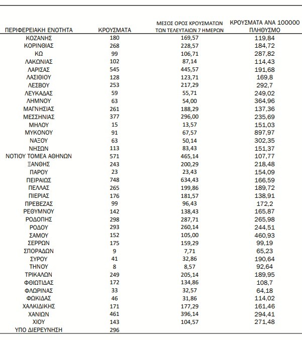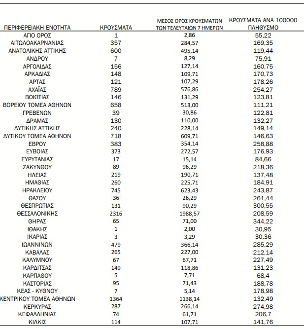 Τα νέα εργαστηριακά επιβεβαιωμένα κρούσματα της νόσου που καταγράφηκαν τις τελευταίες 24 ώρες είναι 19.154.