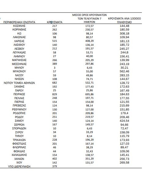 Aναλυτικά, η γεωγραφική κατανομή των σημερινών κρουσμάτων:
