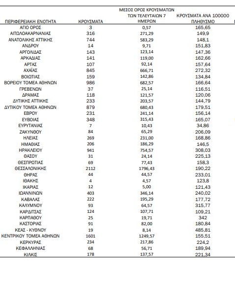 Αναλυτικότερα τα κρούσματα στις περιφερειακές ενότητες που ανήκουν στην Αττική: