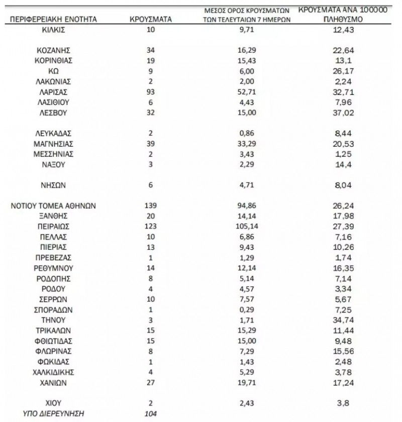 Σύμφωνα με την ανακοίνωση του ΕΟΔΥ: