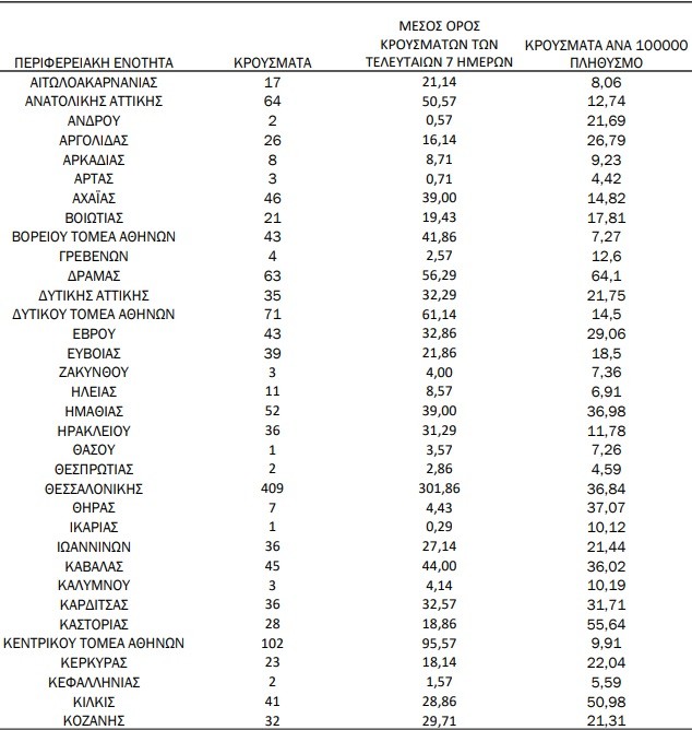 Από αυτά η Αττική έχει 436 νέα κρούσματα κορονοϊού, ενώ η Θεσσαλονίκη 409.