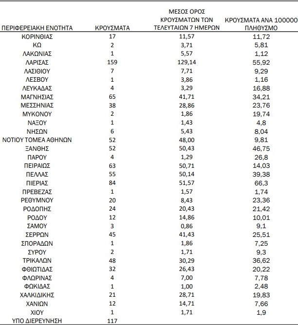 48 νέα κρούσματα στην Π.Ε Τρικάλων
