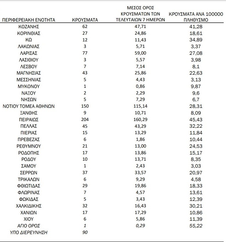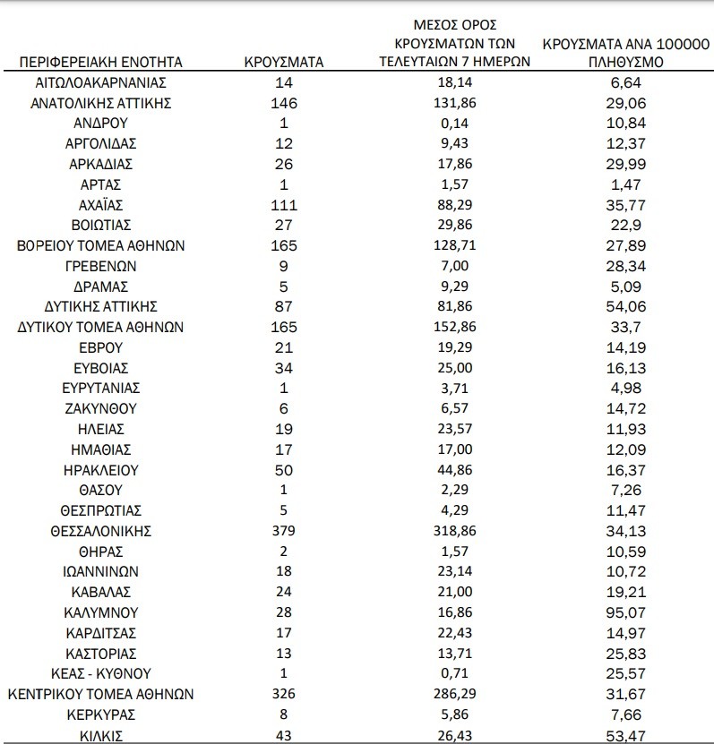 Αναλυτικότερα στην Αττική τα κρούσματα διασπείρονται ως εξής: