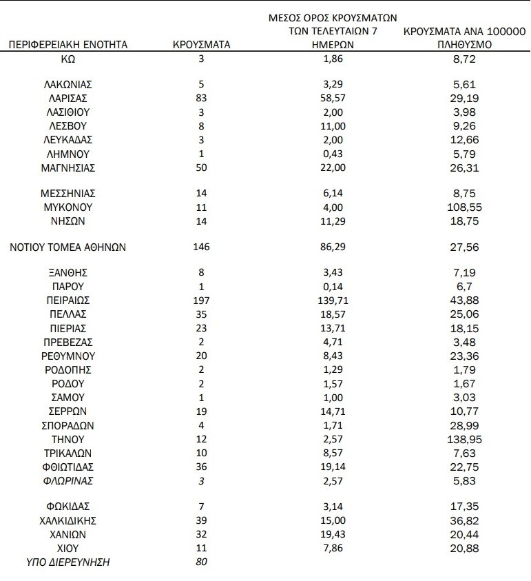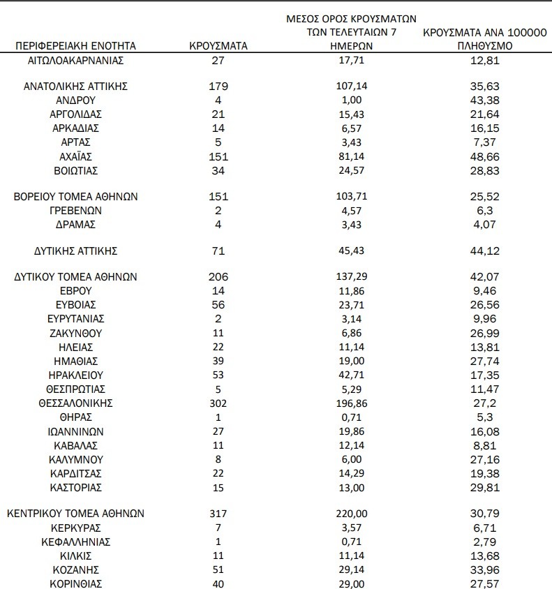 Συγκεκριμένα η κατανομή των κρουσμάτων στην Αττική είναι η ακόλουθη: