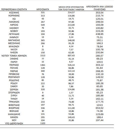 Κορωνοϊός: 28.828 κρούσματα στην χώρα μας – Αριθμός ΣΟΚ κρουσμάτων στα Τρίκαλα