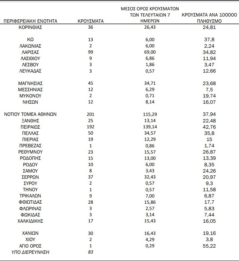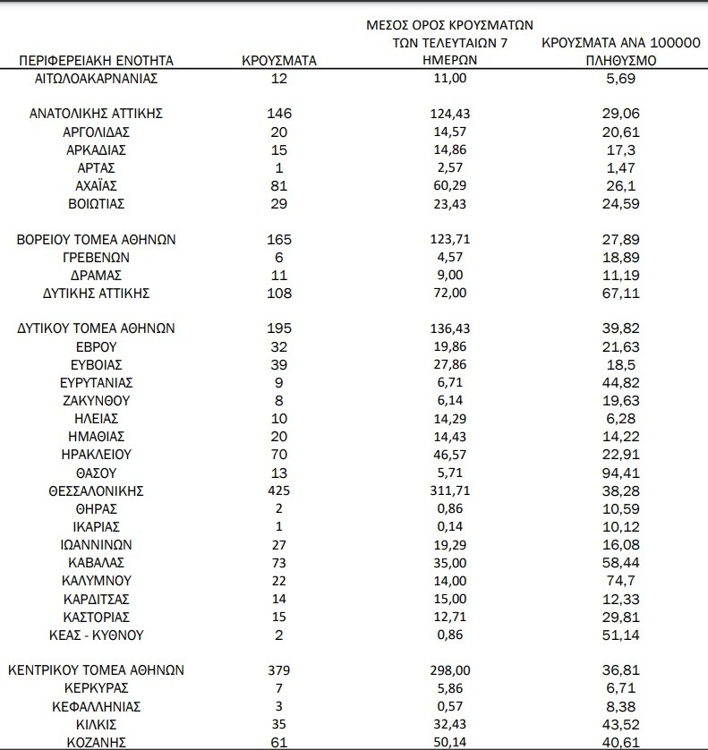Στην πρώτη θέση με 1.398 νέα κρούσματα κορονοιού η Αττική, στη Θεσσαλονίκη τα 425, 99 στη Λάρισα, ενώ στην Αχαΐα 81.
