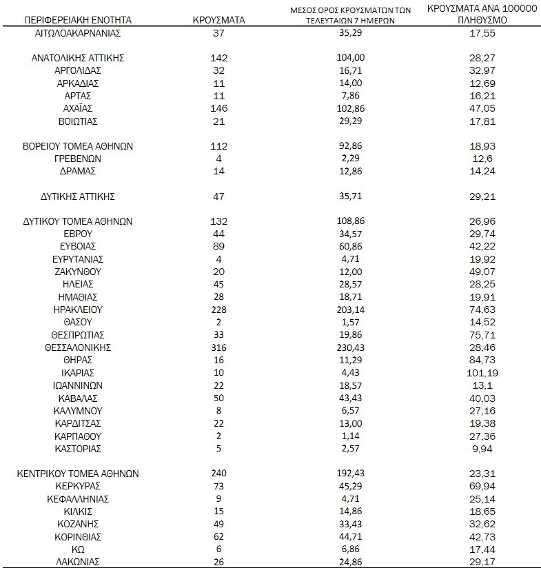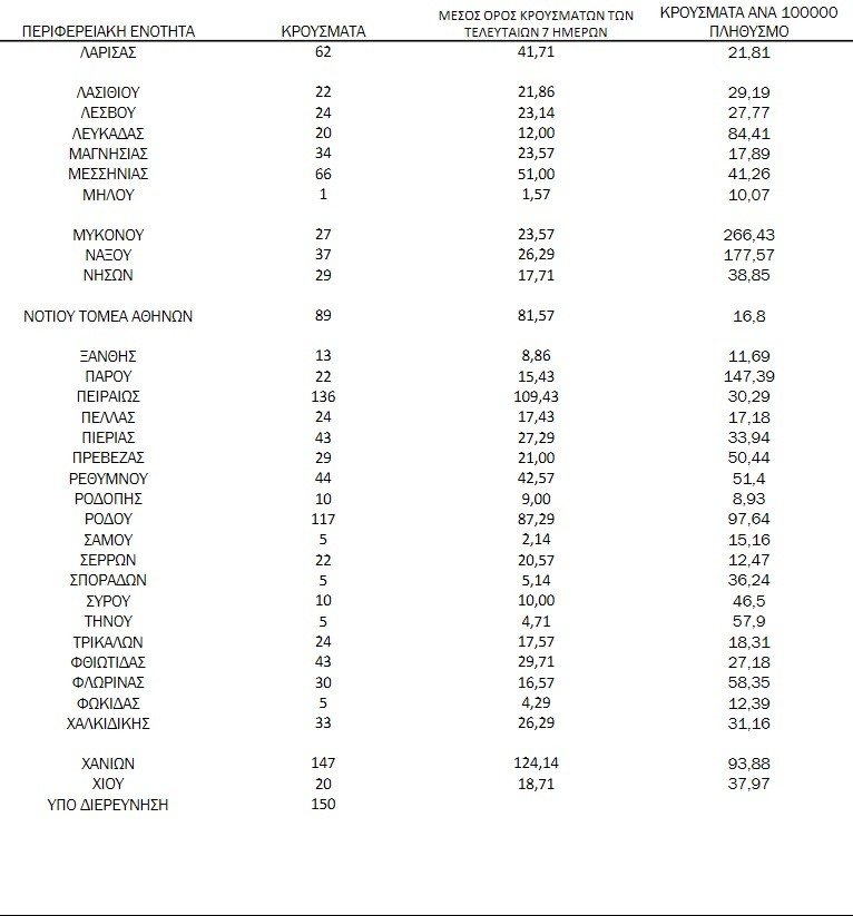 44 περιφέρειες της χώρας μας, καταγράφεται διψήφιος αριθμός κρουσμάτων.