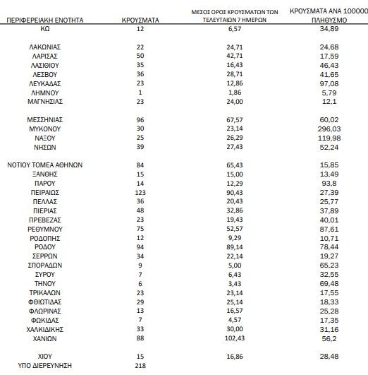 Αναλυτικά η διασπορά των νέων κρουσμάτων σήμερα στην υπόλοιπη Ελλάδα