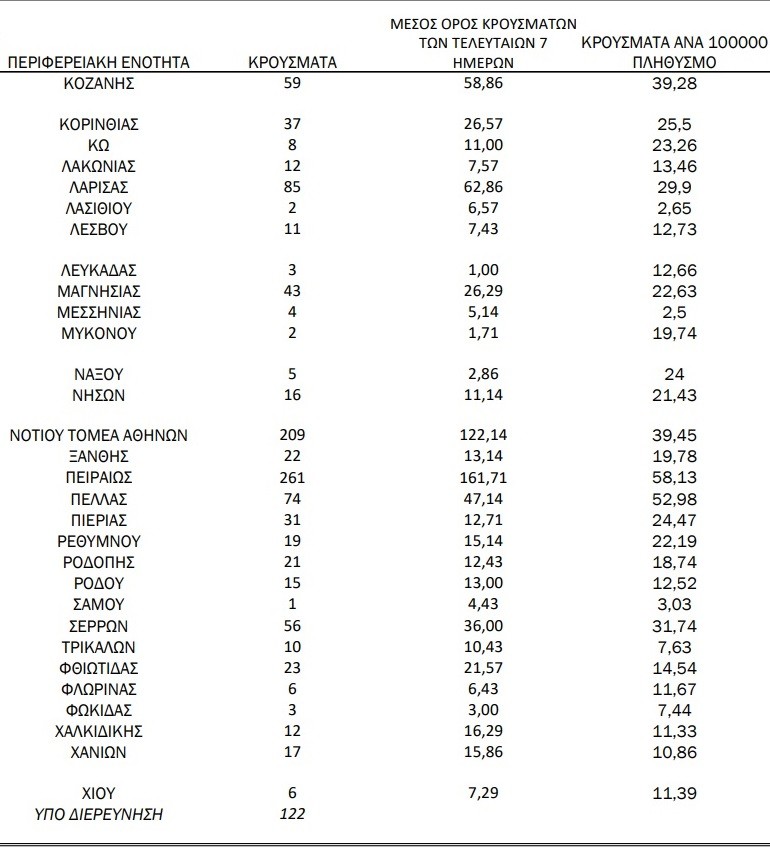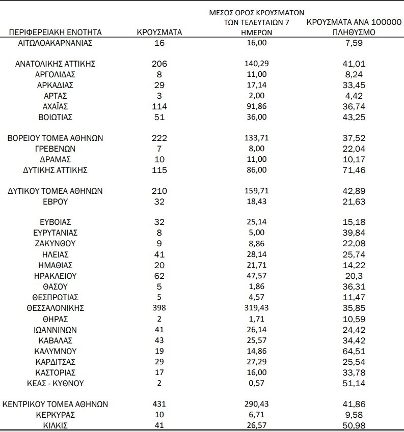 Αναλυτικότερα στην Αττική τα κρούσματα κατανέμονται ως εξής: