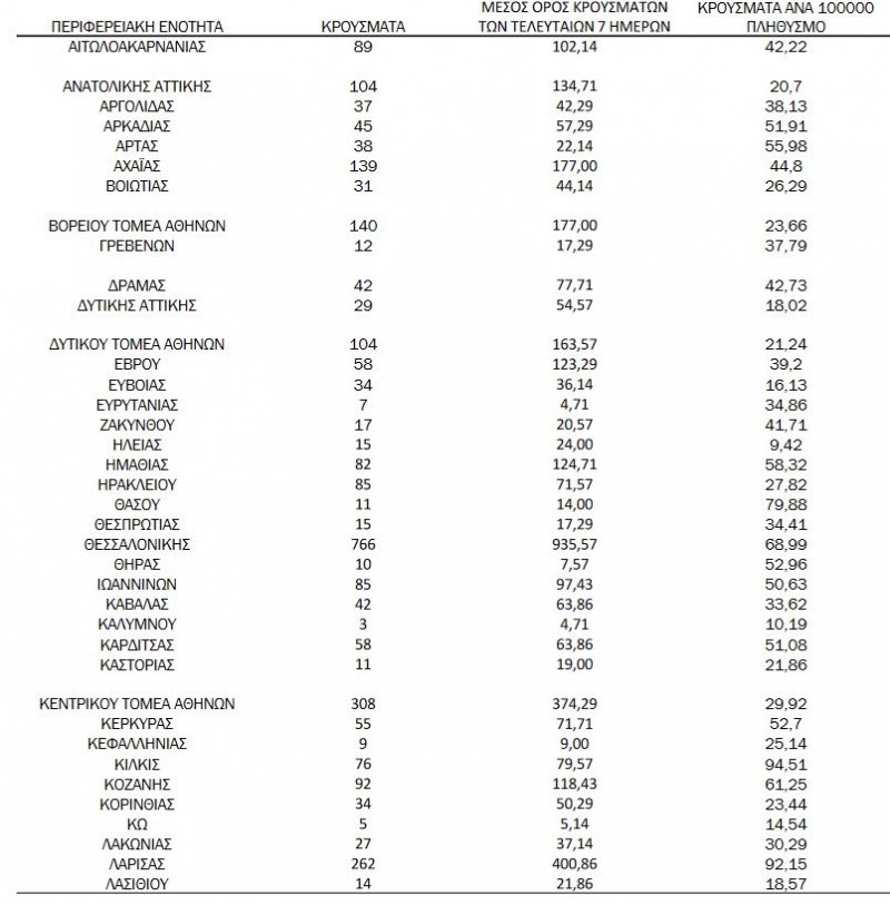 Αναλυτικά η κατανομή των κρουσμάτων σε όλη τη χώρα:
