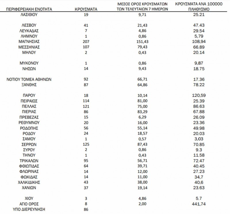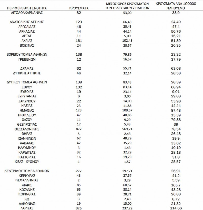 1 Με βάση τα επιβεβαιωμένα κρούσματα των τελευταίων 7 ημερών, 159 θεωρούνται σχετιζόμενα με ταξίδι από το εξωτερικό και 3.023 είναι σχετιζόμενα με ήδη γνωστό κρούσμα.