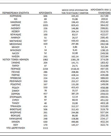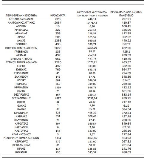 Αναλυτικότερα τα κρούσματα στις περιφερειακές ενότητες που ανήκουν στην Αττική: