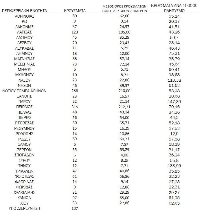 Τα νέα εργαστηριακά επιβεβαιωμένα κρούσματα της νόσου(άτομα) που καταγράφηκαν τις τελευταίες 24 ώρες ήταν 4.761. Ο συνολικός αριθμός των ατόμων που νόσησαν ανέρχεται σε 3.375.812 (ημερήσια μεταβολή +0.1%), εκ των οποίων 48.9% άνδρες.