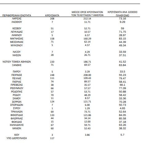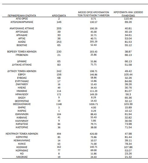 Αναλυτικά, η γεωγραφική κατανομή των σημερινών κρουσμάτων: