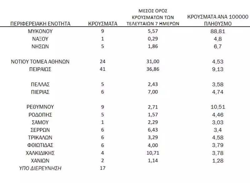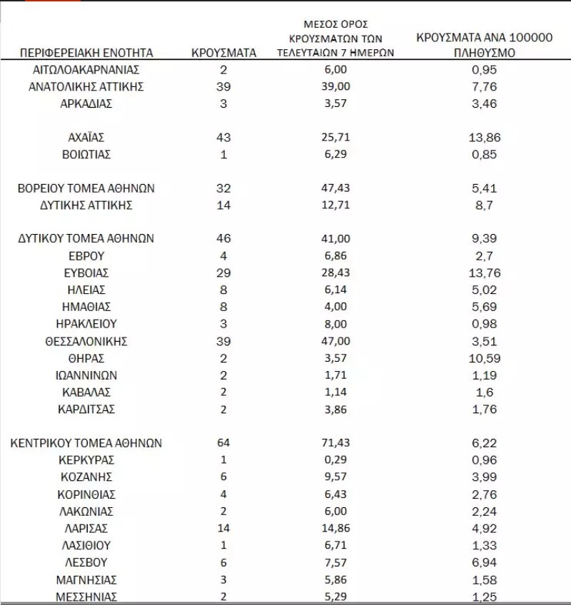 Δείτε αναλυτικά πως κατανέμονται τα κρούσματα ανά περιφέρεια, σύμφωνα με τα στοιχεία του ΕΟΔΥ: