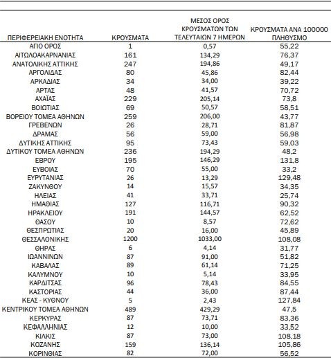 Ο συνολικός αριθμός των κρουσμάτων ανέρχεται σε 901.661 (ημερήσια μεταβολή +0.8%), εκ των οποίων 50.6% άνδρες. 1 Με βάση τα επιβεβαιωμένα κρούσματα των τελευταίων 7 ημερών, 96 θεωρούνται σχετιζόμενα με ταξίδι από το εξωτερικό και 2.295 είναι σχετιζόμενα με ήδη γνωστό κρούσμα.