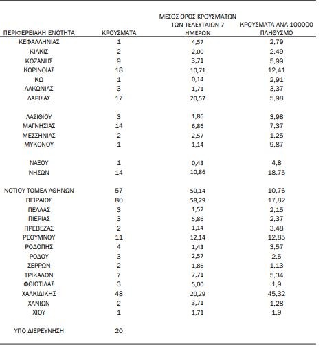 Κεντρικός Τομέα Αθηνών: 170 κρούσματα