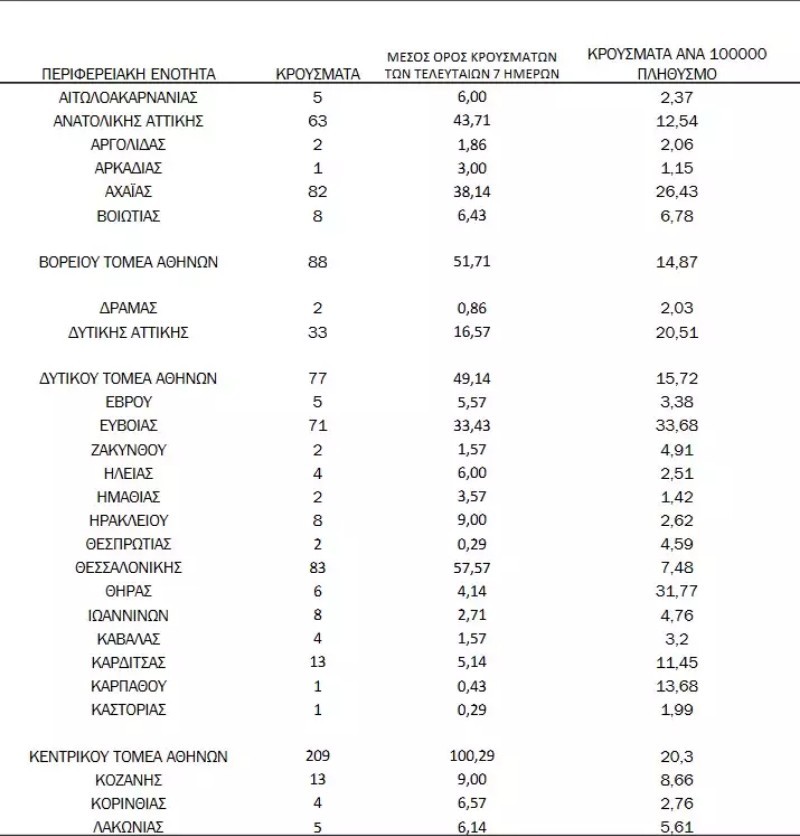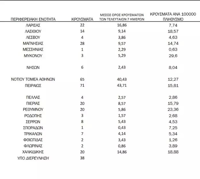 Δείτε αναλυτικά την κατανομή των κρουσμάτων ανά περιφέρεια σύμφωνα με τα στοιχεία του ΕΟΔΥ: