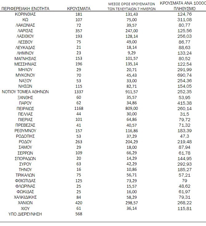Τα νέα εργαστηριακά επιβεβαιωμένα κρούσματα της νόσου(άτομα) που καταγράφηκαν τις τελευταίες