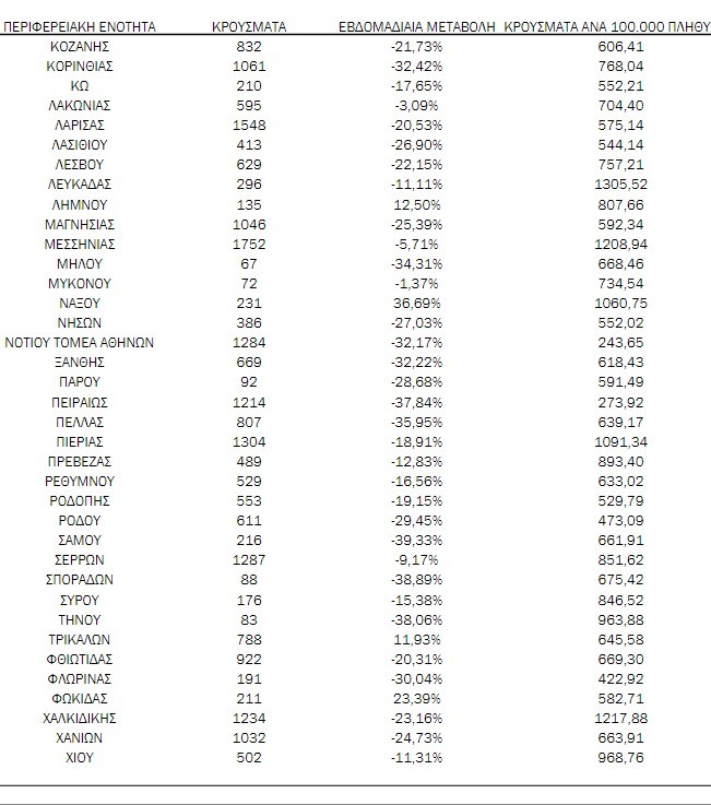 Τα στοιχεία που παρουσιάζονται αφορούν περιστατικά από την επιδημιολογική επιτήρηση της νόσου από το νέο