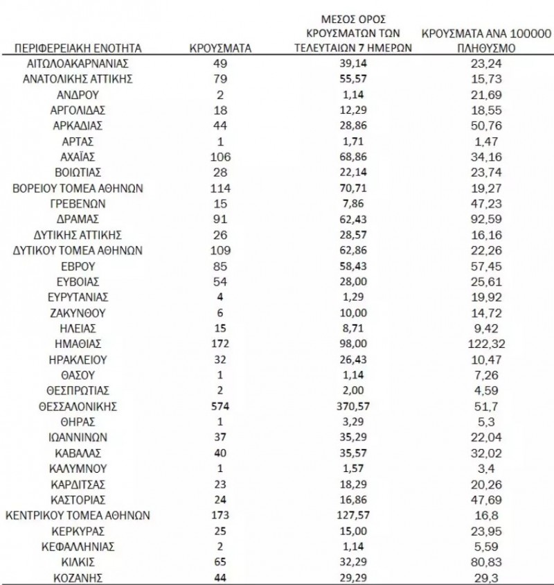 Από το συνολικό αριθμό των νέων κρουσμάτων, τα 701 είναι στην Αττική ενώ τα 574 είναι στη Θεσσαλονίκη.
