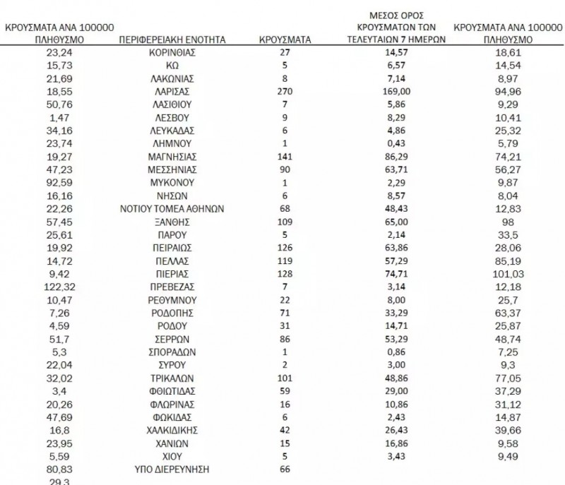 Εκτός από αυτές τις δύο περιοχές όμως, σήμερα, τριψήφιο αριθμό νέων κρουσμάτων έχουν και οι εξής: