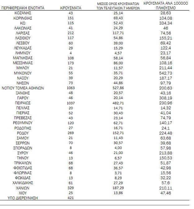Τα στοιχεία που παρουσιάζονται αφορούν περιστατικά από την επιδημιολογική επιτήρηση της νόσου από το νέο κορωνοϊό (COVID-19), με βάση τα δεδομένα που έχουν δηλωθεί στον ΕΟΔΥ και καταγραφεί μέχρι τις 21 Ιουνίου 2022 (ώρα 09:00).