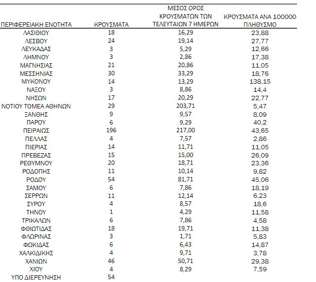 Τα νέα εργαστηριακά επιβεβαιωμένα κρούσματα της νόσου(άτομα) που καταγράφηκαν τις τελευταίες 24 ώρες ήταν 2.501. Ο συνολικός αριθμός των ατόμων που νόσησαν ανέρχεται σε 3.473.141 (ημερήσια μεταβολή +0.1%), εκ των οποίων 48.8% άνδρες.