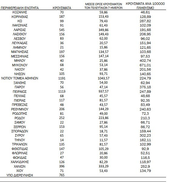 Τα νέα εργαστηριακά επιβεβαιωμένα κρούσματα της νόσου(άτομα) που καταγράφηκαν τις τελευταίες 24