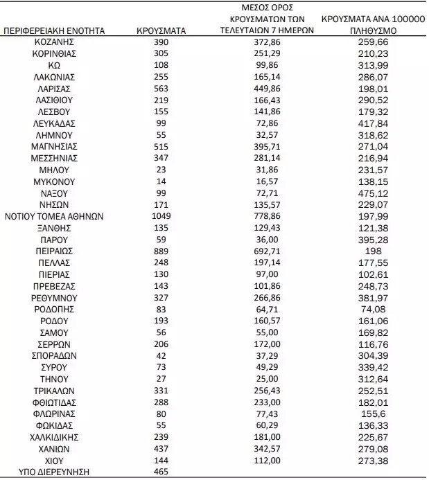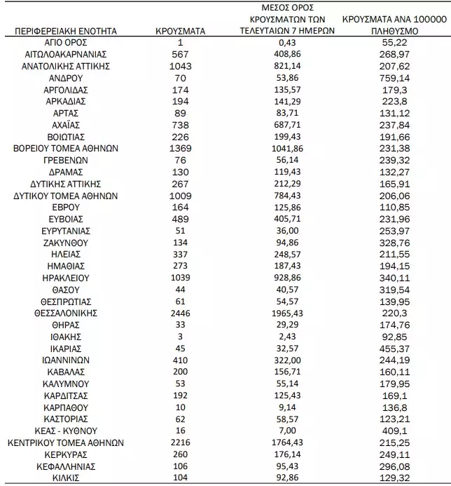 Σύμφωνα με τα στοιχεία που δημοσιοποιήθηκαν, από τα συνολικά 23.748 κρούσματα του τελευταίο 24ώρου, τα 8.013 εντοπίστηκαν στην Αττική, τα 2.446 στη Θεσσαλονίκη και το Ηράκλειο «μέτρησε» 1.039.
