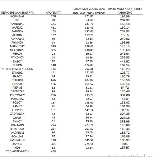 Αναλυτικότερα τα κρούσματα στις περιφερειακές ενότητες που ανήκουν στην Αττική: