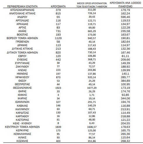Αναλυτικότερα τα κρούσματα στις περιφερειακές ενότητες που ανήκουν στην Αττική: